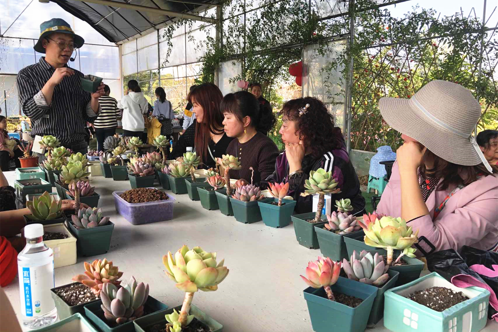 活動伊始,段昌敏代表工會女工委員會向在場女性同胞們送上了節(jié)日祝福,并組織大家參觀了多肉植物園。隨后,多肉植物園園主為女職工們科普多肉植物,并講授如何培養(yǎng)多肉,期間的有獎競答將活動引入了高潮。在進行別具一格的多肉植物DIY時,大家圍坐在一起,在園主的講解和指導下,饒有興趣的開始栽種。剖土、栽種、鋪面、美化……一盆盆“小巧呆萌”的組合多肉呈現(xiàn)在眼前。大家都樂在其中,一會兒談笑風生,一會兒相互協(xié)助、拍照留念,讓活動在愉快的氛圍中有序開展。