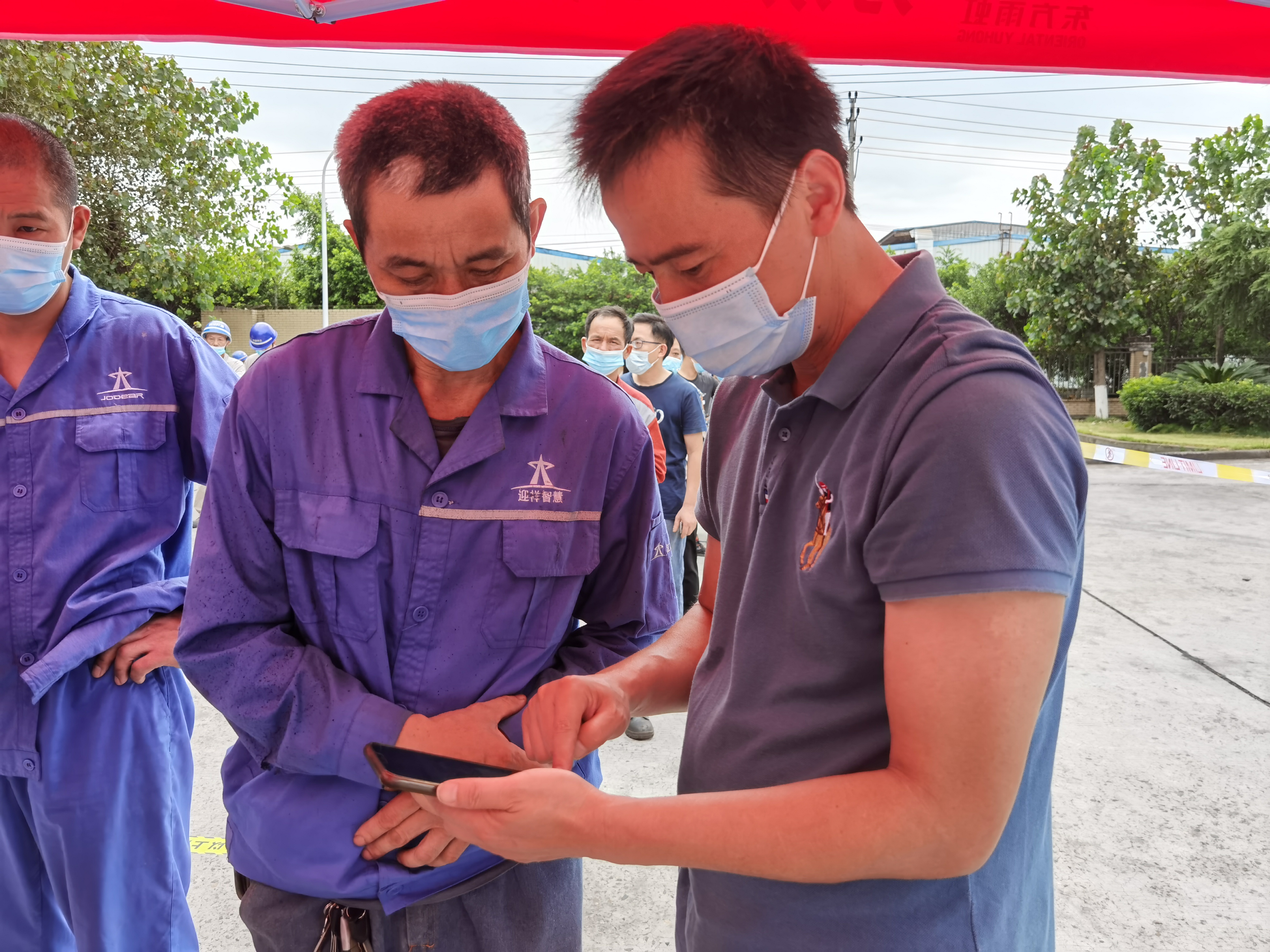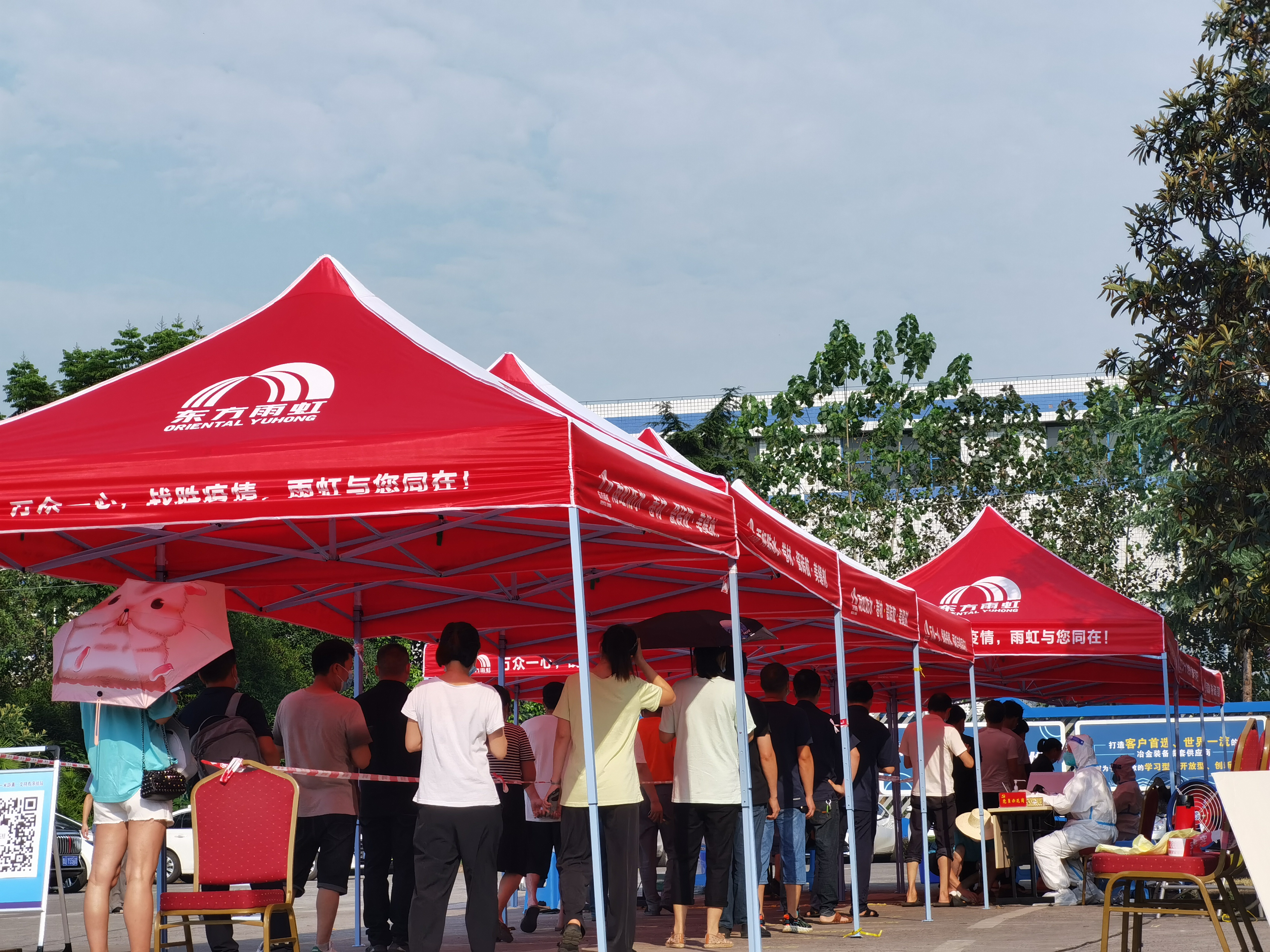 22日,距離中冶賽迪裝備約2公里的區(qū)域也出現(xiàn)了確診病例。為積極配合江津區(qū)政府疫情防控工作安排,當(dāng)日上午約9時(shí)許,公司作為園區(qū)的五個(gè)核酸采樣點(diǎn)之一,立即協(xié)助園區(qū)開(kāi)展公司江津辦公區(qū)全體員工及周邊企業(yè)人員核酸檢測(cè)工作。公司工會(huì)、團(tuán)委及新冠疫情防控工作領(lǐng)導(dǎo)小組辦公室動(dòng)員了多名員工組成志愿者隊(duì)伍,迅速開(kāi)始布置場(chǎng)地。搬桌子、接插座、搭遮陽(yáng)棚、貼間隔線、擺指示牌……各項(xiàng)工作僅半個(gè)小時(shí)即完成。10點(diǎn)核算樣本采集工作準(zhǔn)時(shí)開(kāi)始,維持秩序、檢測(cè)體溫、指導(dǎo)采樣步驟,采集工作有序開(kāi)展,一直持續(xù)到下午8時(shí)。盡管當(dāng)天刮起六級(jí)大風(fēng),期間還出現(xiàn)降雨,但大家始終堅(jiān)持在現(xiàn)場(chǎng)做好服務(wù),未曾退縮。據(jù)統(tǒng)計(jì)當(dāng)日完成了公司全體員工及周邊泰宇機(jī)械、重齒機(jī)械等二十余家公司約4000名人員的采樣工作。
