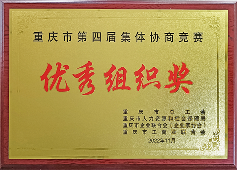 重慶市第四屆集體協(xié)商競賽于11月7日至8日在江北世紀金源大飯店舉行,來自各區(qū)縣總工會、市級產(chǎn)業(yè)工會的46支代表隊參賽。公司人力資源部副部長張昆作為江津區(qū)總工會代表隊的首席代表,聯(lián)合其他3位協(xié)商代表,為江津區(qū)總工會贏得了“優(yōu)秀組織獎”榮譽,張昆個人獲得重慶市 “優(yōu)秀協(xié)商員”榮譽稱號。