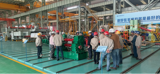 2023年3月14日,臺灣燁興線棒復(fù)合線改造項目業(yè)主就中冶賽迪裝備設(shè)備成套的NHCD系列高剛度短應(yīng)力線軋機、FHSCD系列飛剪、夾送輥、SRSCD系列高速線材減定徑機組等核心設(shè)備進行A檢。通過過程材料檢查、數(shù)據(jù)測量、模擬試車等一系列環(huán)節(jié),各項指標均符合設(shè)計要求,A檢順利通過。其中精軋區(qū)核心裝備之一的減徑機測試速度達117m/s,最大振動值2.6mm/s,達到國際先進水平。