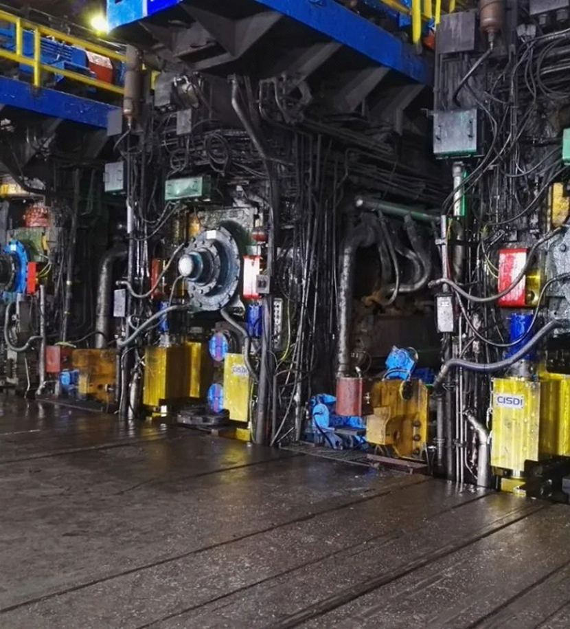 ▲ 中冶賽迪供貨的精軋機彎竄輥箱在英國鋼廠運行中