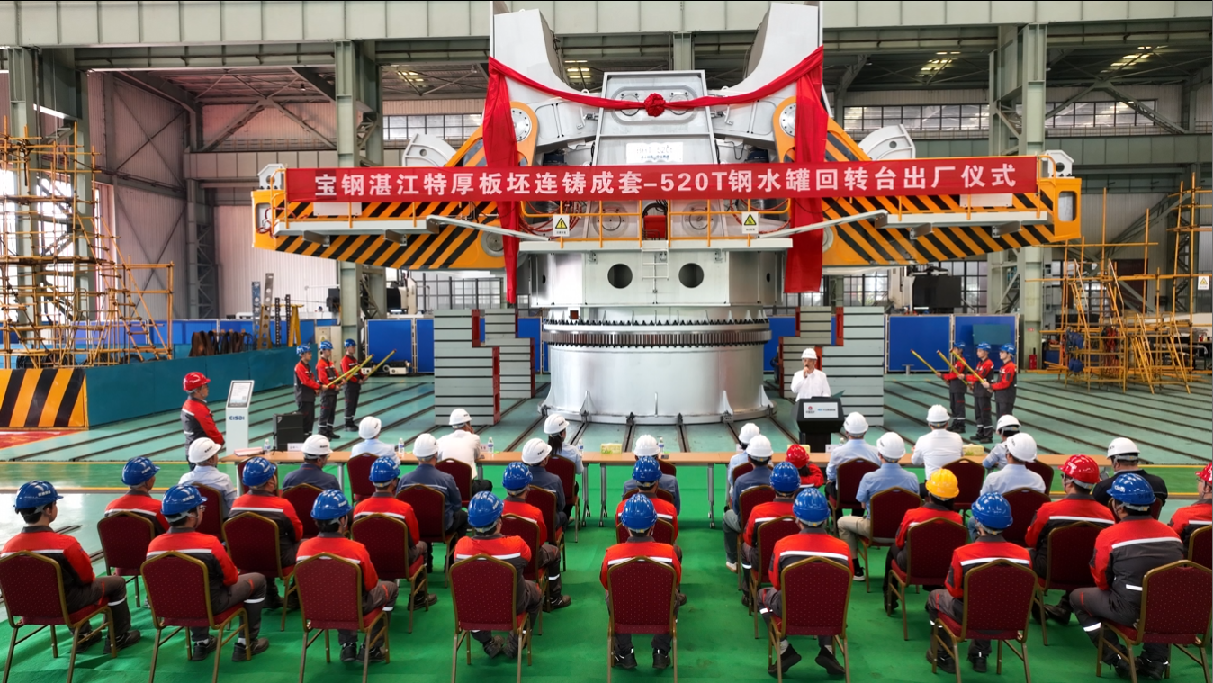 2025年5月14日,由中冶賽迪負(fù)責(zé)設(shè)計(jì)制造的寶鋼湛江鋼鐵新增5號(hào)特厚板坯連鑄成套項(xiàng)目鋼水罐回轉(zhuǎn)臺(tái)順利通過(guò)A檢驗(yàn)收,正式出廠。寶鋼湛江鋼鐵副總指揮王超及有關(guān)領(lǐng)導(dǎo)出席出廠儀式,中冶賽迪股份公司、中冶賽迪上海公司、中冶賽迪裝備公司有關(guān)負(fù)責(zé)人,參與本項(xiàng)目的技術(shù)、檢驗(yàn)、制造人員參加出廠儀式。